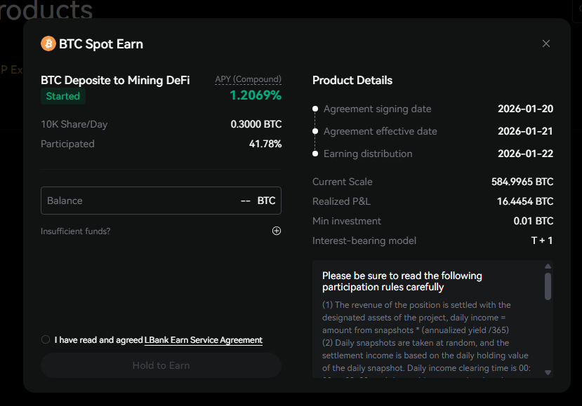 balance 에 원하는 수량을 입력후 동의 체크 한뒤 Hold to Earn 누릅니다.
