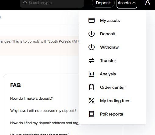 1단계: OKX 자산 메뉴 접속