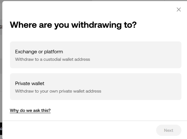 출금 방식: '온체인 출금(On-chain Withdrawal)' 선택